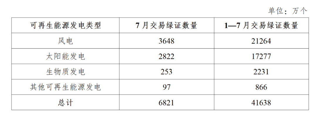 2025年7月,全國(guó)交易綠證6821萬(wàn)個(gè),其中綠色電力交易綠證3472萬(wàn)個(gè)。2025年1—7月,全國(guó)交易綠證4.16億個(gè),其中綠色電力交易綠證1.41億個(gè)。