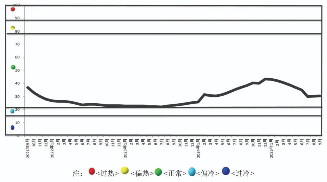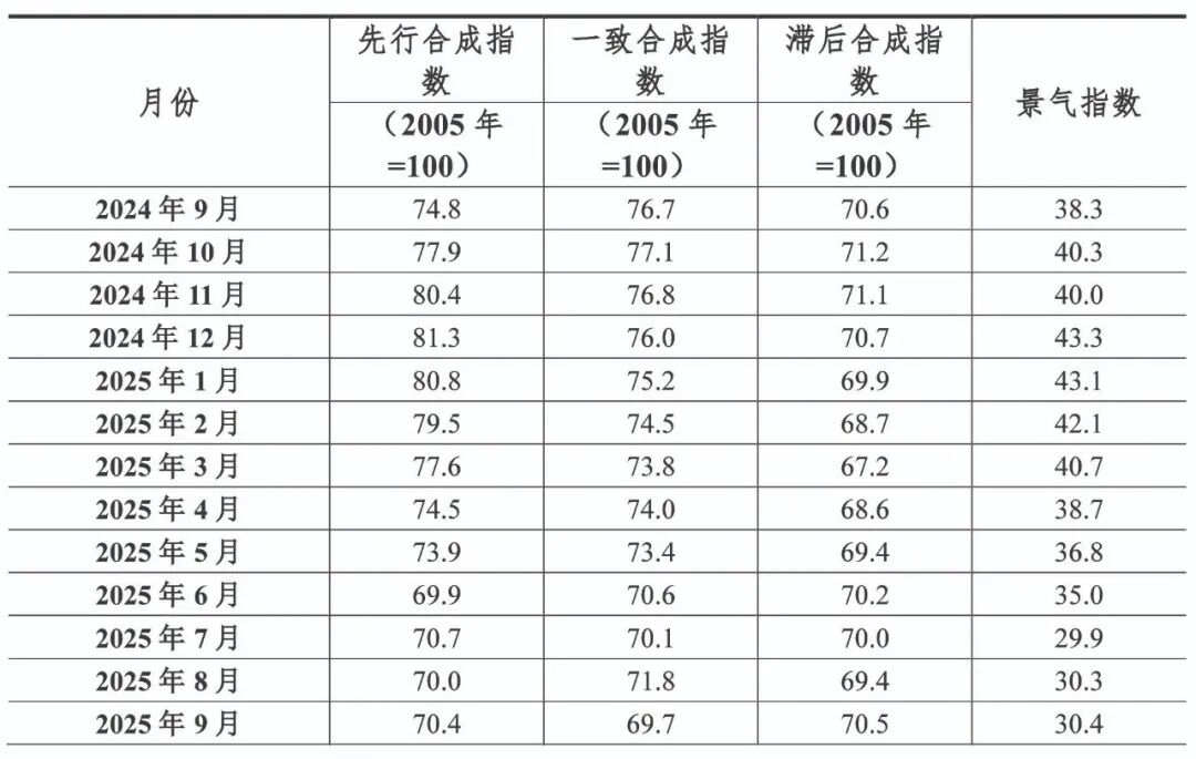中國有色金屬產(chǎn)業(yè)月度景氣指數(shù)監(jiān)測模型結(jié)果顯示,2025年9月份,中國有色金屬產(chǎn)業(yè)景氣指數(shù)為30.4,較上月上升0.1個百分點(diǎn);先行指數(shù)70.4,較上月上升0.4個百分點(diǎn);一致指數(shù)為69.7,較上月下降2.1個百分點(diǎn)。