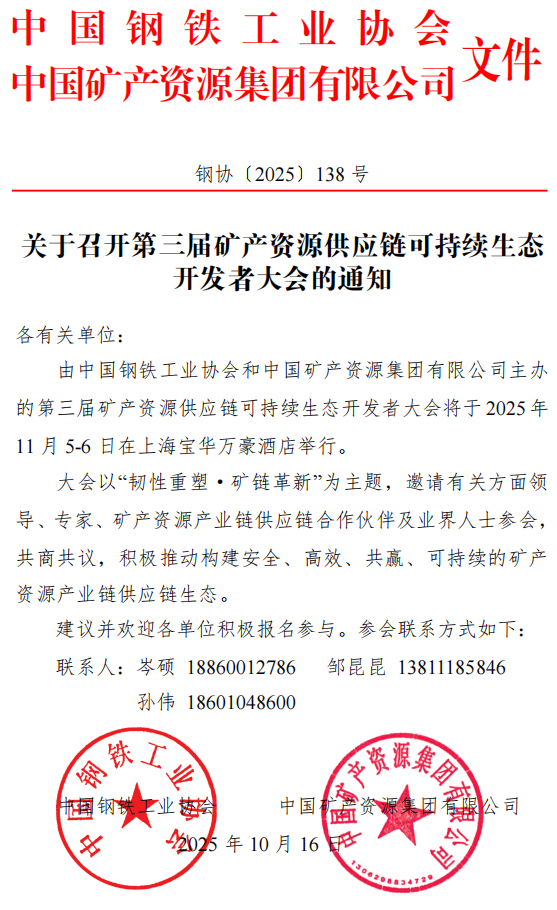 關于召開第三屆礦產資源供應鏈可持續(xù)生態(tài)開發(fā)者大會的通知