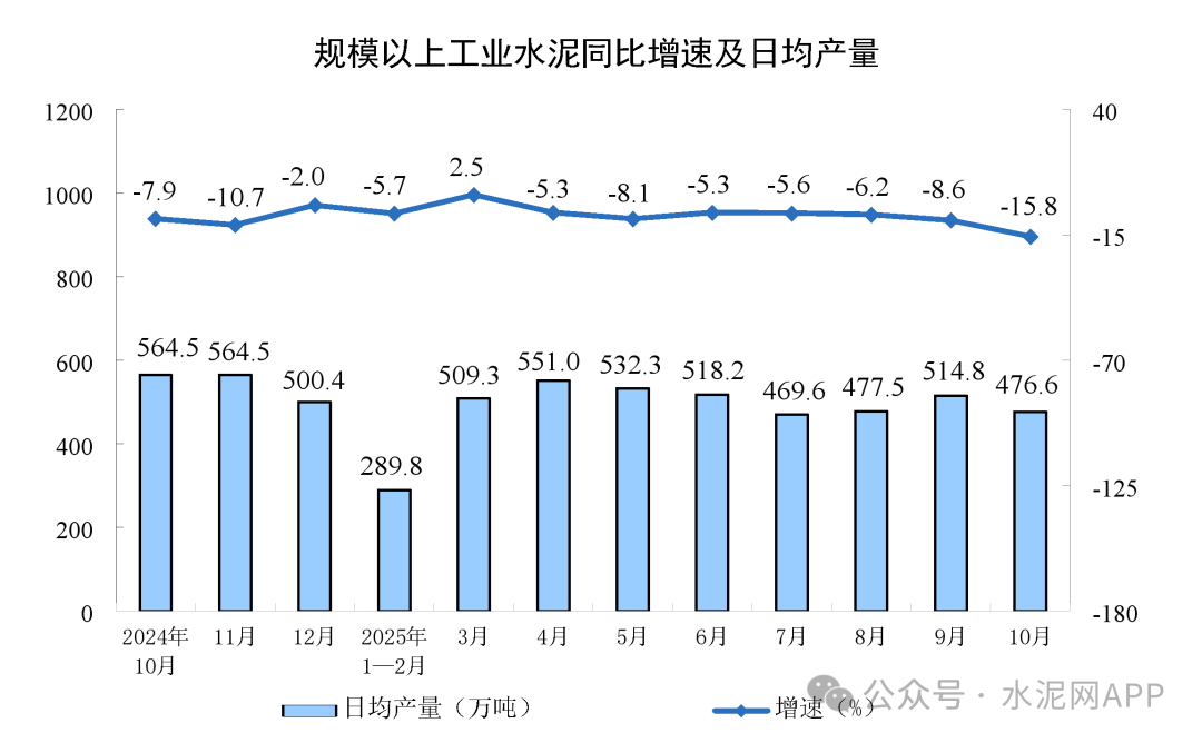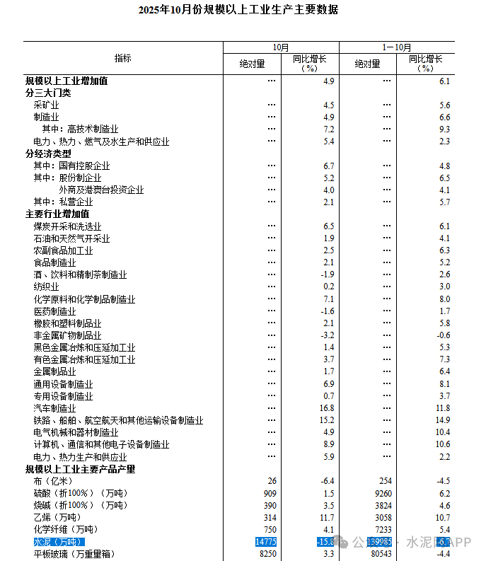 其中水泥行業(yè)10月份全國(guó)水泥產(chǎn)量14775萬(wàn)噸,下降15.8%;1-10月全國(guó)水泥產(chǎn)量139985萬(wàn)噸,同比下降6.7%。