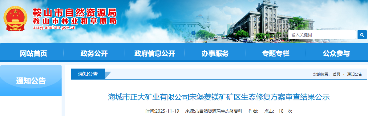 根據(jù)《遼寧省自然資源廳關(guān)于〈中華人民共和國礦產(chǎn)資源法〉實施衘接過渡期礦區(qū)生態(tài)修復(fù)方案評審工作的公告》、《遼寧省自然資源廳關(guān)于印發(fā)<礦山地質(zhì)環(huán)境保護(hù)與土地復(fù)墾方案省級審查管理辦法(試行)>的通知》(遼自然資發(fā)〔2022〕129號)有關(guān)要求,我局組織專家對《海城市正大礦業(yè)有限公司宋堡菱鎂礦礦區(qū)生態(tài)修復(fù)方案》進(jìn)行了審查?,F(xiàn)將擬通過的方案及專家評審意見進(jìn)行公示,公示期自發(fā)布之日起7個工作日。