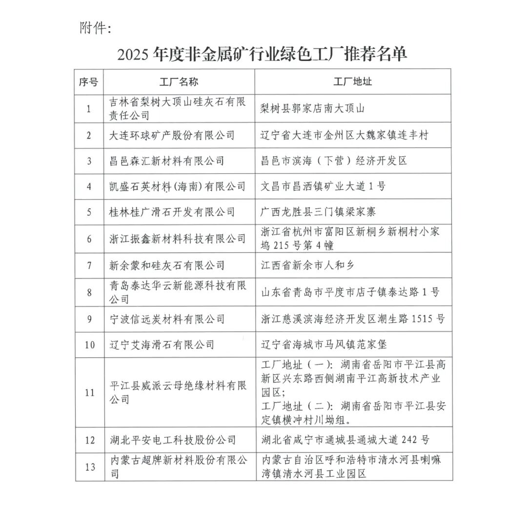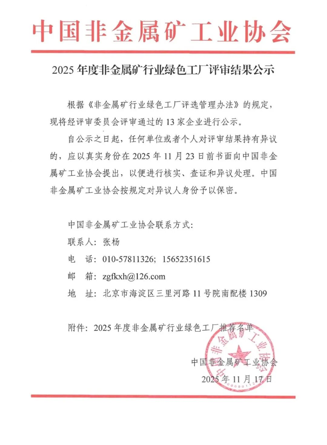 2025年度非金屬礦行業(yè)綠色工廠評審結(jié)果公示