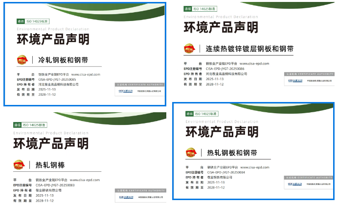 近日,敬業(yè)鋼鐵4款鋼鐵產(chǎn)品的環(huán)境產(chǎn)品聲明(EPD)順利通過(guò)中國(guó)船級(jí)社認(rèn)證,并成功發(fā)布于中國(guó)鋼鐵工業(yè)協(xié)會(huì)EPD平臺(tái)。這4份EPD報(bào)告涉及產(chǎn)品分別為熱軋鋼板和鋼帶、熱軋鋼棒、冷軋鋼板和鋼帶、連續(xù)熱鍍鋅鍍層鋼板和鋼帶。