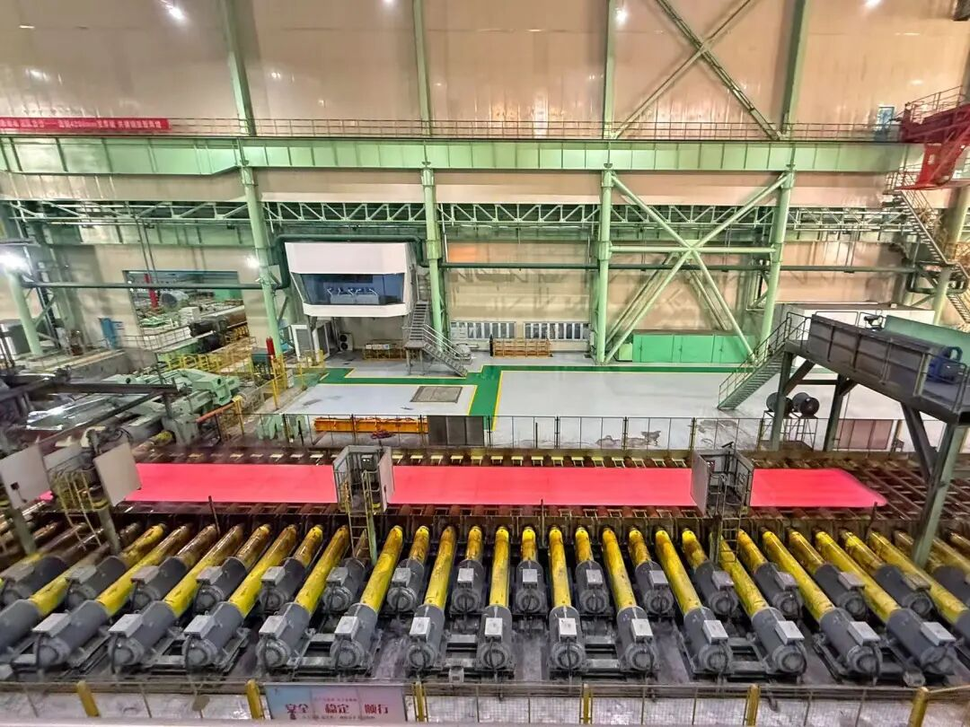 基于壓縮比小、斷面尺寸大、厚度精度控制高等特性,特厚寬板對加熱制度、軋制節(jié)奏、壓下模型的精準度等提出了嚴苛要求,長期以來是鋼鐵行業(yè)厚規(guī)格產品開發(fā)的“硬骨頭”。此次100mm級特厚寬板的成功軋制,源自生產、工藝、設備多部門的深度協(xié)同攻關。煉軋廠專門組建專項攻堅團隊,建立“全流程閉環(huán)管控”機制,從鋼坯入爐到成品出庫,對每個關鍵環(huán)節(jié)進行系統(tǒng)性優(yōu)化升級。