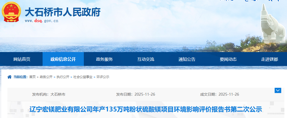 電子版報告下載:征求意見稿-遼寧宏鎂肥業(yè)有限公司年產(chǎn)135萬噸粉狀硫酸鎂項目環(huán)境影響報告書