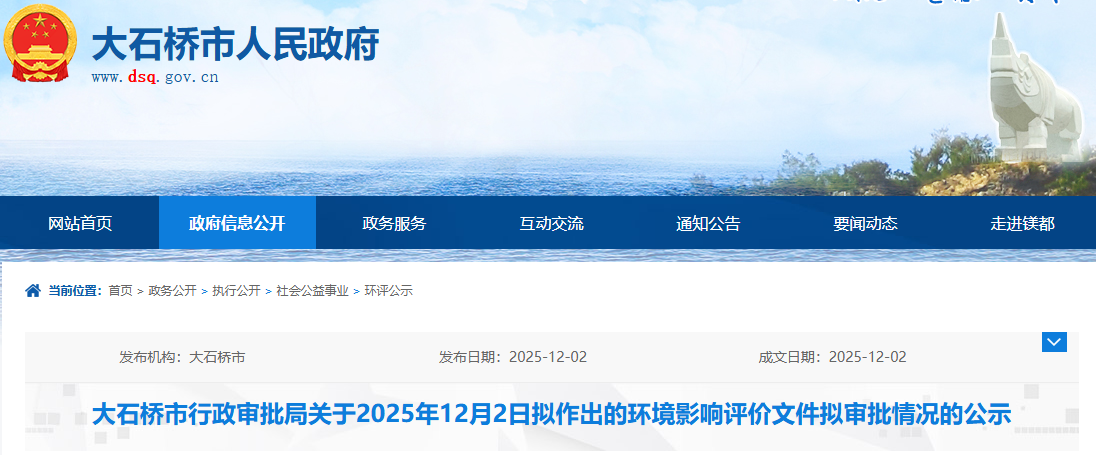 根據(jù)建設項目環(huán)境影響評價審批程序的有關規(guī)定,經(jīng)審查,我局擬對1個項目環(huán)境影響評價文件作出審批意見。為保證此次審查工作的嚴肅性和公正性,現(xiàn)將擬作出審批意見的環(huán)境影響評價文件基本情況予以公示,公示期為2025年12月1日-2025年12月5日(5個工作日)。