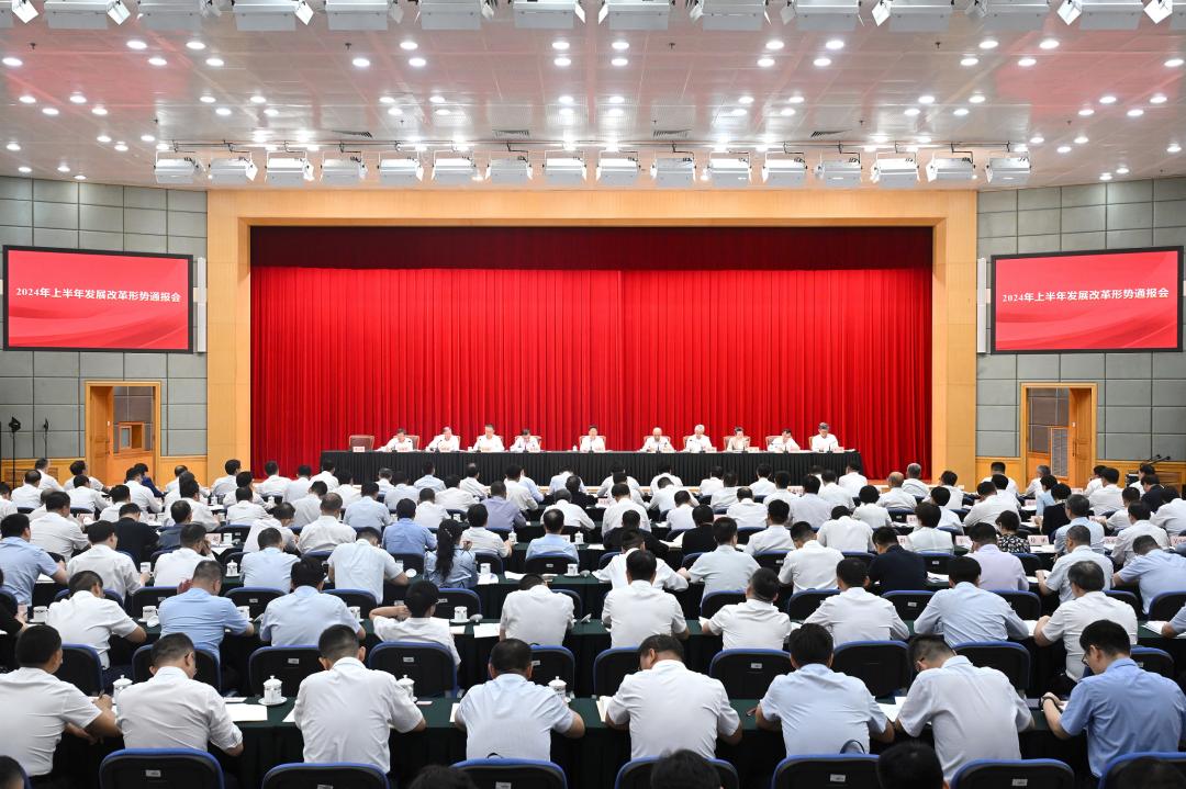 7月30日,國(guó)家發(fā)展改革委召開(kāi)2024年上半年經(jīng)濟(jì)形勢(shì)通報(bào)會(huì),深入學(xué)習(xí)領(lǐng)會(huì)習(xí)近平總書記重要講話和重要指示批示精神,傳達(dá)學(xué)習(xí)中央政治局會(huì)議關(guān)于2024年上半年經(jīng)濟(jì)形勢(shì)的分析研判和下半年經(jīng)濟(jì)工作的決策部署,安排下半年發(fā)展改革重點(diǎn)工作。國(guó)家發(fā)展改革委黨組書記、主任鄭柵潔主持會(huì)議并講話。