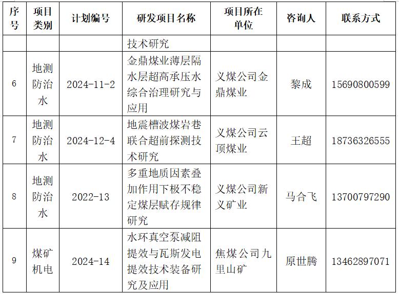 河南能源集團2024年“揭榜掛帥”研發(fā)項目榜單公告(第四批)