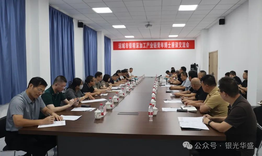 2024 年 8 月 17 日,青年博士河東行暨運城市鎂精深加工產業(yè)鏈座談交流會在山西銀光華盛鎂業(yè)有限公司創(chuàng)新中心會議室召開,運城市縣有關領導以及 8 家金屬鎂企業(yè)代表共同出席了本次座談會。