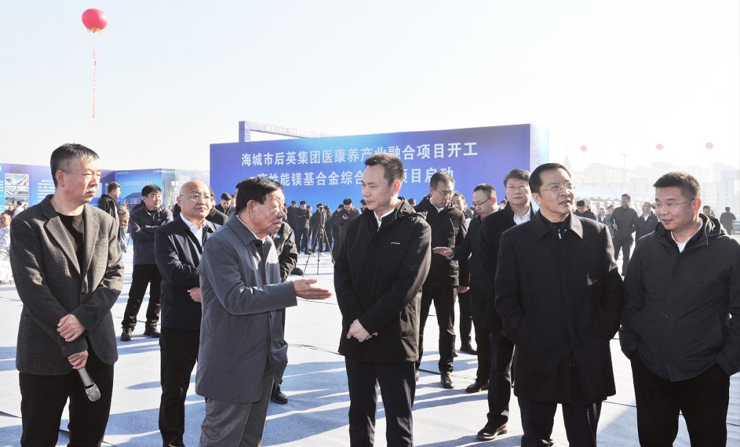 10月28日,后英集團(tuán)醫(yī)康養(yǎng)產(chǎn)業(yè)融合項(xiàng)目開工、高性能鎂基合金綜合利用項(xiàng)目啟動(dòng)儀式在我市舉行。鞍山市委副書記、市長(zhǎng)吳開華出席并宣布項(xiàng)目啟動(dòng)。鞍山市委常委、海城市委書記陸薦援,鞍山市政府秘書長(zhǎng)劉廣新出席啟動(dòng)儀式。海城市委副書記、市長(zhǎng)楊野致辭,市人大常委會(huì)主任韓繼昌、市政協(xié)主席聞?dòng)⒎?、后英集團(tuán)總經(jīng)理何著勝、后英集團(tuán)副總經(jīng)理何憲超、光大養(yǎng)老(無錫)運(yùn)營(yíng)管理有限公司執(zhí)行總裁張建華出席啟動(dòng)儀式。