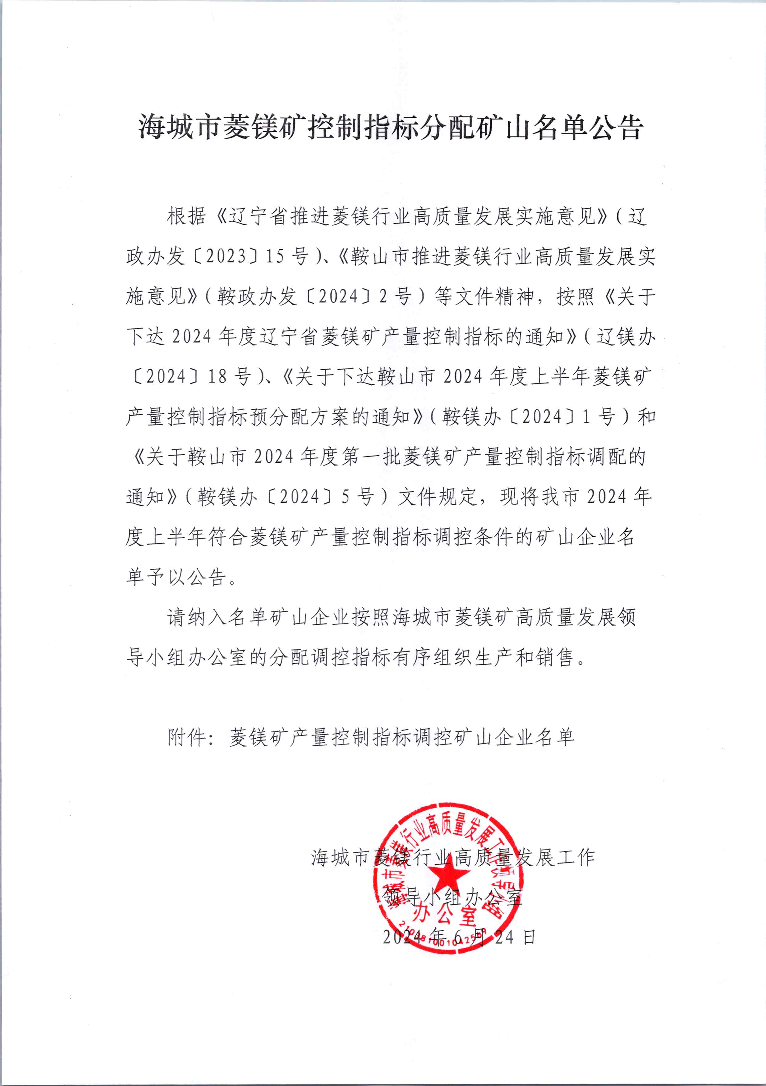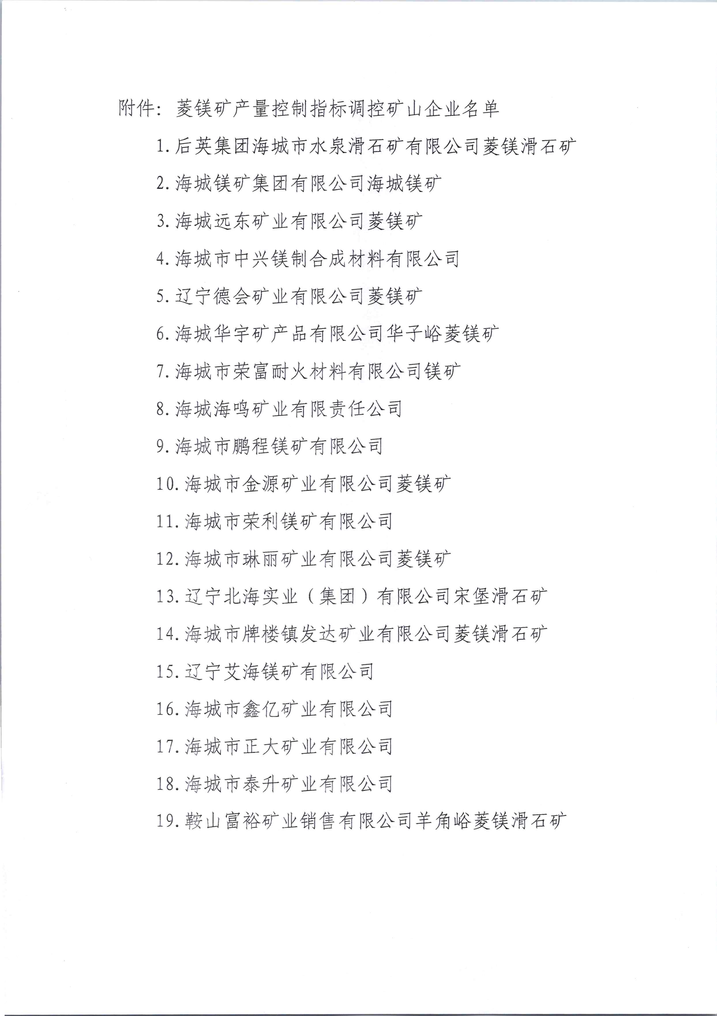海城市公布《菱鎂礦產(chǎn)量控制指標(biāo)調(diào)控礦山企業(yè)名單》,19家菱鎂礦企入選