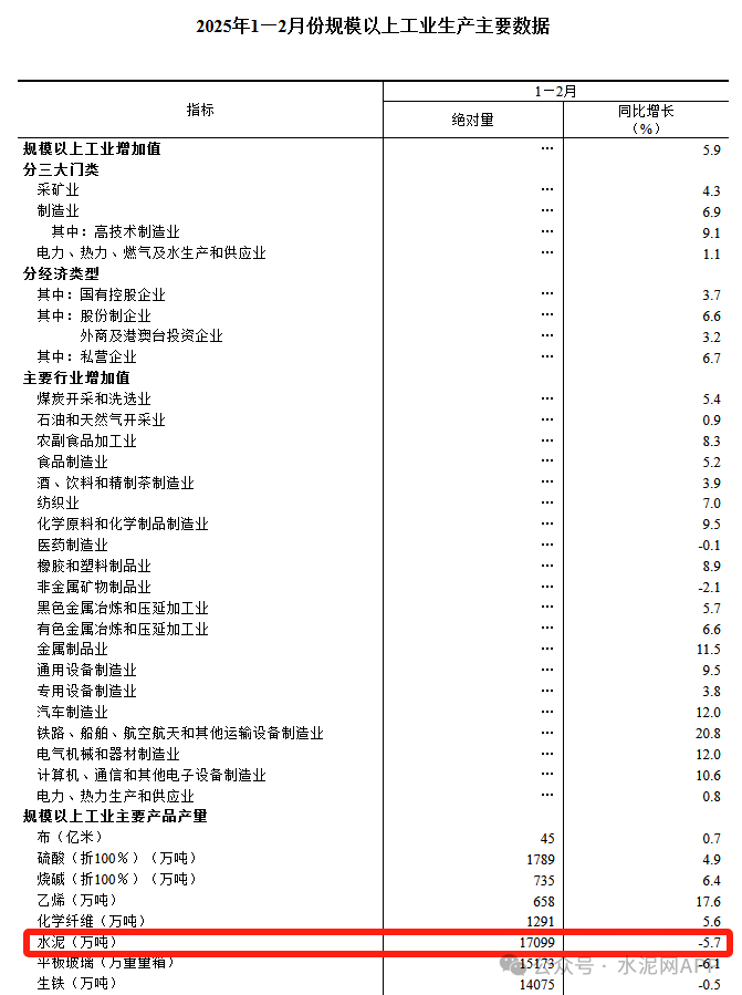1-2月全國水泥產(chǎn)量1.71億噸,全口徑降幅6.5%!