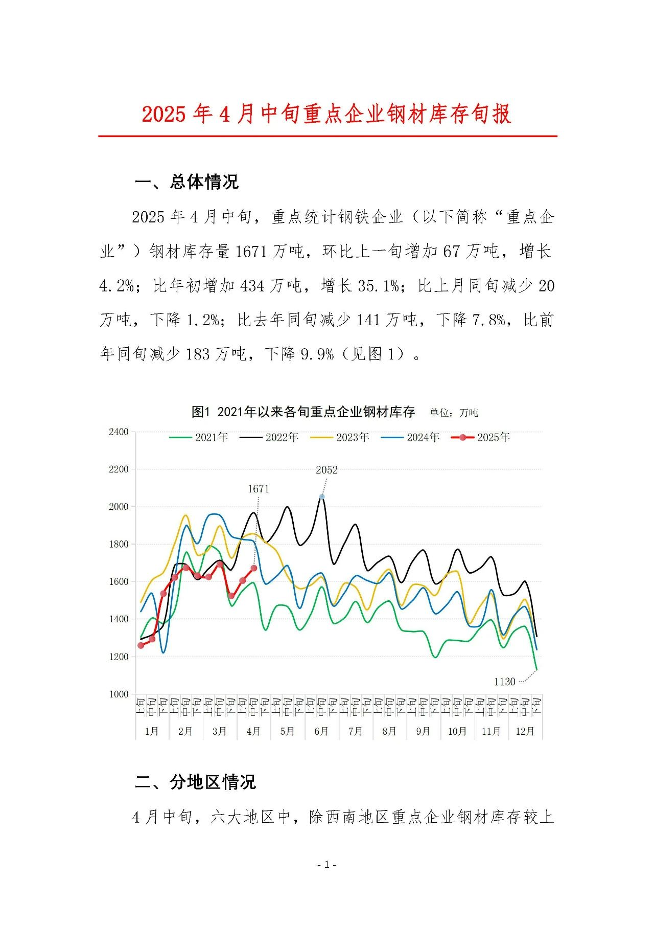 2025年4月中旬重點(diǎn)企業(yè)鋼材庫存旬報(bào)