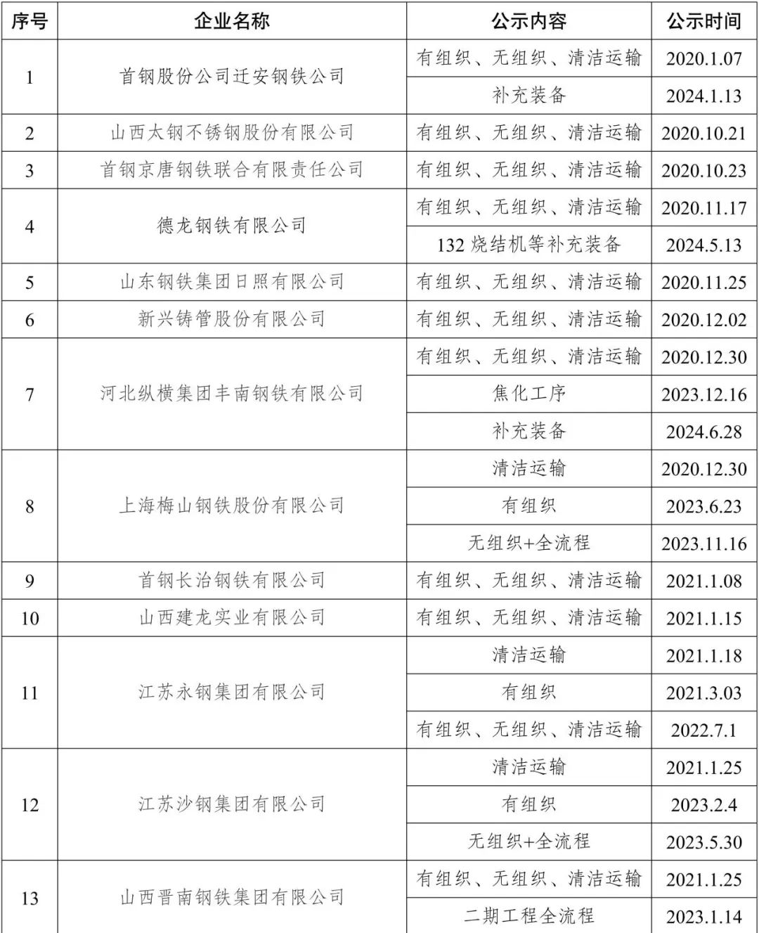 自2020年8月起,中國鋼鐵工業(yè)協(xié)會(huì)開展了鋼鐵企業(yè)超低排放改造和評(píng)估監(jiān)測(cè)進(jìn)展情況公示工作。截至目前,已有139家企業(yè)在鋼協(xié)網(wǎng)站進(jìn)行公示。已公示企業(yè)名單匯總及各企業(yè)公示內(nèi)容整理如下: