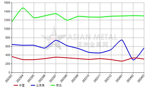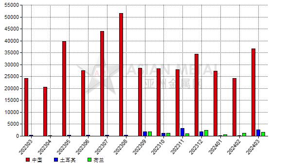 2024年3月,印度鎂砂前三大進(jìn)口來(lái)源國(guó)為中國(guó)、土耳其和荷蘭。