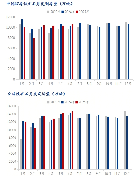 綜合來看,2025年7月中國市場鐵礦石過渡至供應寬松,港口庫存或?qū)⒗^續(xù)累庫,鐵礦石價格或?qū)⑵跽鹗帯?